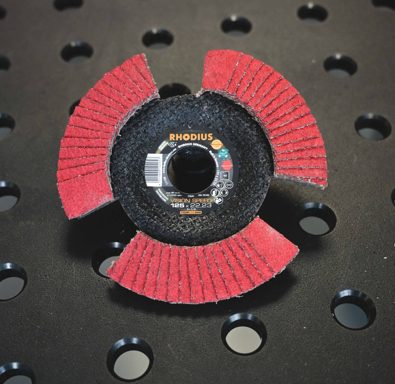 RHODIUS fertigt diese Fächerschleifscheibe auch für Winkelschleifer mit dem X-LOCK Schnellspannsystem.